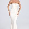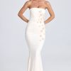 Draped Floral-Appliqué Maxi Dress in Ivory