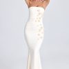 Draped Floral-Appliqué Maxi Dress in Ivory