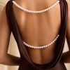 Designed to bring the drama this festive season and beyond, the Monnie mini dress is crafted from high-shine soft jersey to an A-line silhouette with a stunning low cowl back anchored with lustrous, detachable faux-pearl straps. It features a built-in boat-neck bodysuit that hugs your curves and a draped A-line mini skirt that creates the look of elevated separates for a sultry yet statement take on party dressing.
