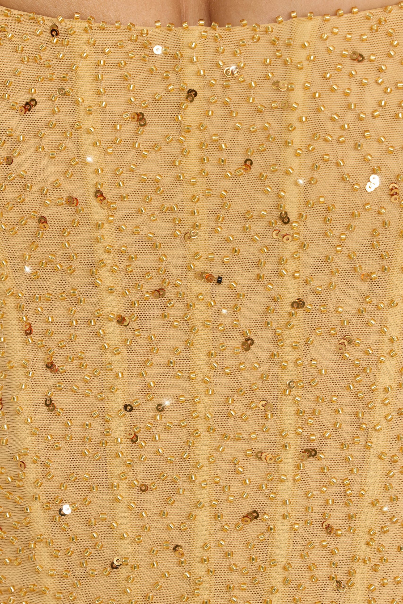 Embellished Corset Tulle Skirt Mini Dress in Gold