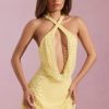 For the statement makers. Command attention with the Sylune mini dress, crafted from our premium glittered mesh fabric with three-dimensional bead embellishments for maximum impact. Cut to an A-line silhouette, it features a plunging keyhole cut-out at the front and open-back design with adjustable cross-back straps.
