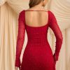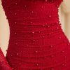 Embellished Cowl-Neck Draped Mini Dress in True Red