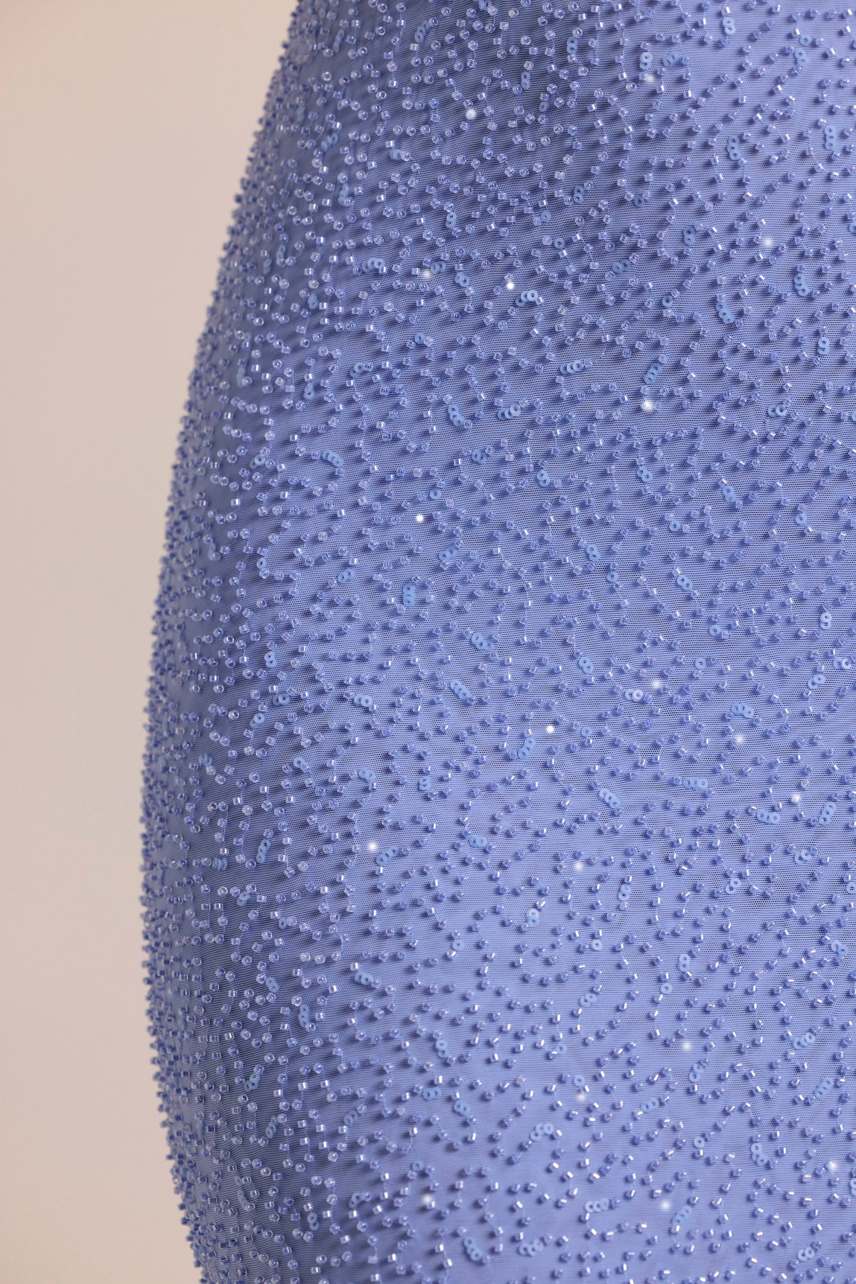 - Fully embellished with seeded beading