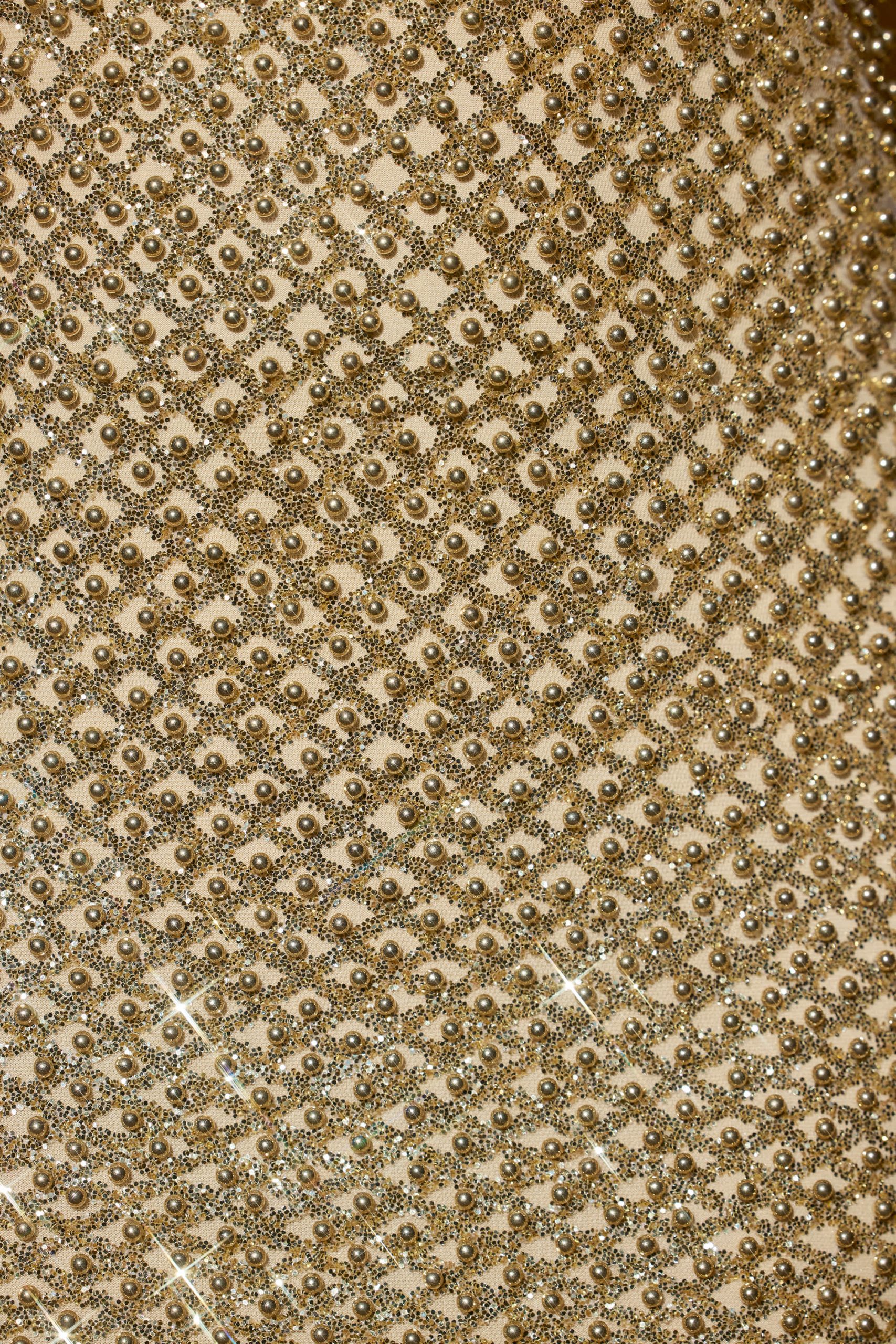 Iconic sparkle, all-new silhouettes. Crafted from our premium, sculpting and stretchy glittered mesh with sparkling bead embellishments for maximum impact, the Arlowe mini dress is cut to a figure-hugging bodycon silhouette and detailed with a universally flattering plunge cowl neckline, making it perfect for parties.