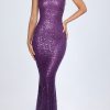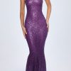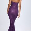 Embellished Cut-Out Bandeau Maxi Dress in Grape