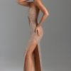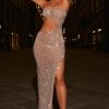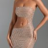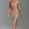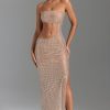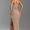 Designed for decadent evenings. A statement style that will hold its place in your occasionwear rotation, the Alamea maxi dress is crafted from premium 20D mesh with a touch of stretch to a column silhouette. It’s framed with a bandeau neckline secured with internal silicone tape for enhanced hold and punctuated with a curved cut-out at the waist. The signature HOTFIX embellishments promise endless sparkle all night long.