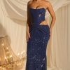 Extra-special silhouettes. Designed to create the effect of coordinating separates, the Saphira gown features a fitted corset bodice and semi-sheer fishtail skirt, framed by a curved hem and draped detailing at the waist. It’s crafted from premium 20D stretch mesh saturated with custom-developed square sequins and bead embellishments that sparkle under spotlights.