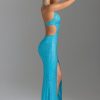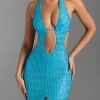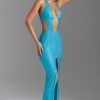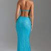 Embellished Cut-Out Halterneck Maxi Dress in Aqua Blue
