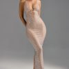 Unique silhouettes for maximum impact. Statement eveningwear is our forte and the Akiko maxi dress is proof: it’s crafted from premium 20D mesh to a sculpting bodycon silhouette, underlaid with a lightweight single-layer lining, and adorned with scores of hand-embellished HOTFIX crystals that provide endless sparkle. The plunging neckline and triangle cut-out are mirrored at the back for a striking finish.