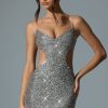 Inspired by statement noughties styles and our favourite muses from the era, the Cleo dress is punctuated with a graphic asymmetric cut-out at the front and secured with two slender adjustable straps at the back. It’s crafted from our figure-skimming 20D mesh fabric to a high-neck silhouette and enlivened with rhinestone embellishments for maximum impact on the dance floor.