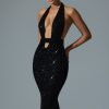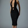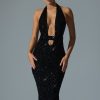 Embellished Cut-Out Open-Back Midaxi Dress in Black
