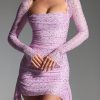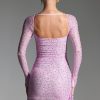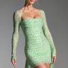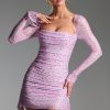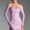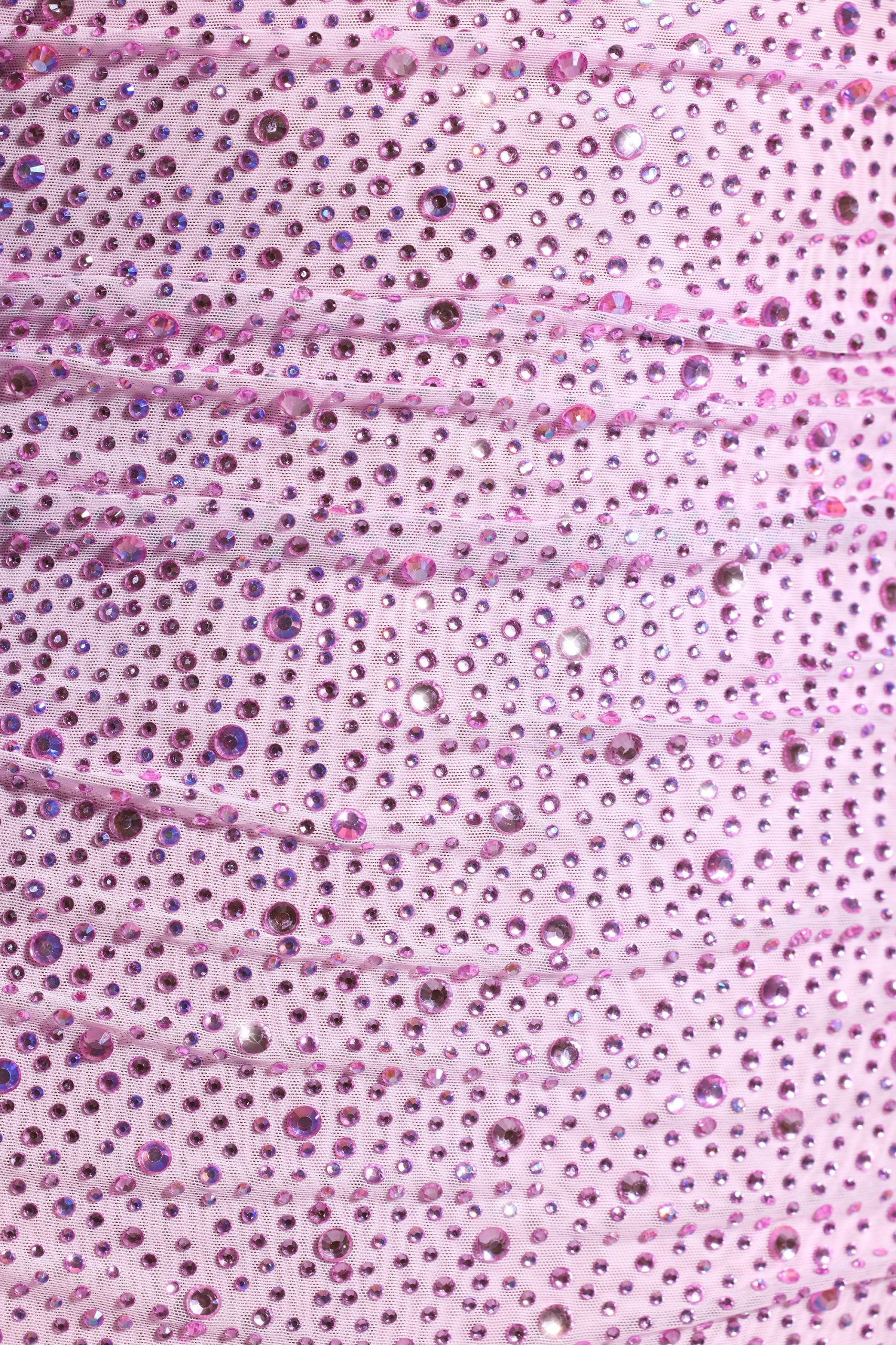 The perfect complement to glitzy evenings. Imagined in our London atelier and crafted from premium 20D mesh with a touch of stretch, the Marilla mini dress is cut to a figure-skimming bodycon silhouette with a square neckline. It’s framed with long sleeves, waterfall draped detailing at the hem and embellished with scores of sparkling HOTFIX embellishments for a statement look.