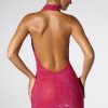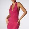 Embellished Extreme Cowl Neck Halter Mini Dress in Hot Pink