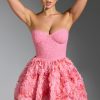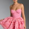 Ethereal elements meet classic corsetry with the Evanthe mini dress. A one-of-a-kind piece that’s designed to attract all eyes your way, it features a fully embellished boned bodice and falls to a frothy A-line mini skirt adorned with custom-made tulle rosettes: each one is lovingly hand-applied to create a striking three-dimensional finish. The sweetheart neckline is anchored by delicate detachable straps, allowing you to create multiple looks.