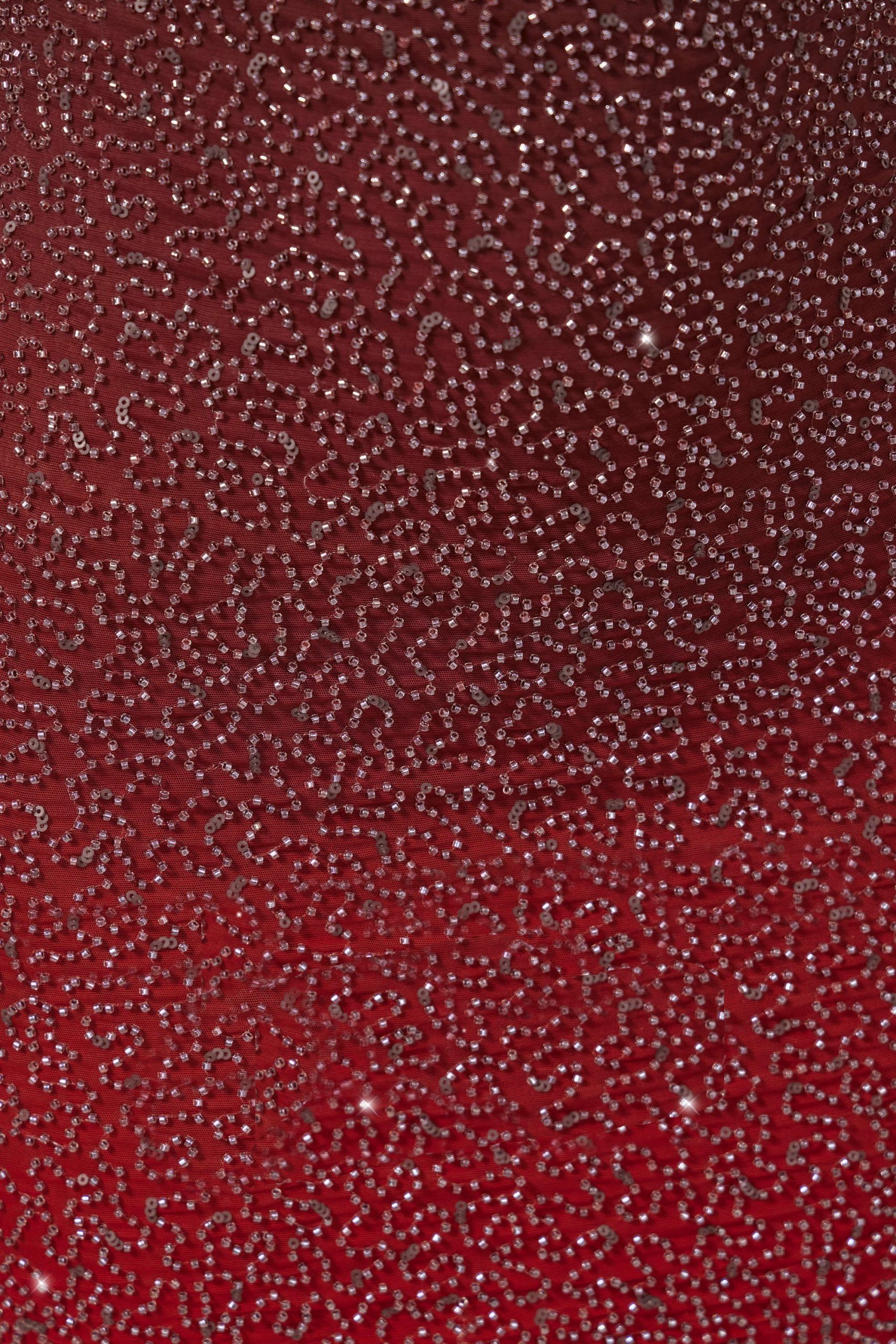 - Fully embellished with seeded beading