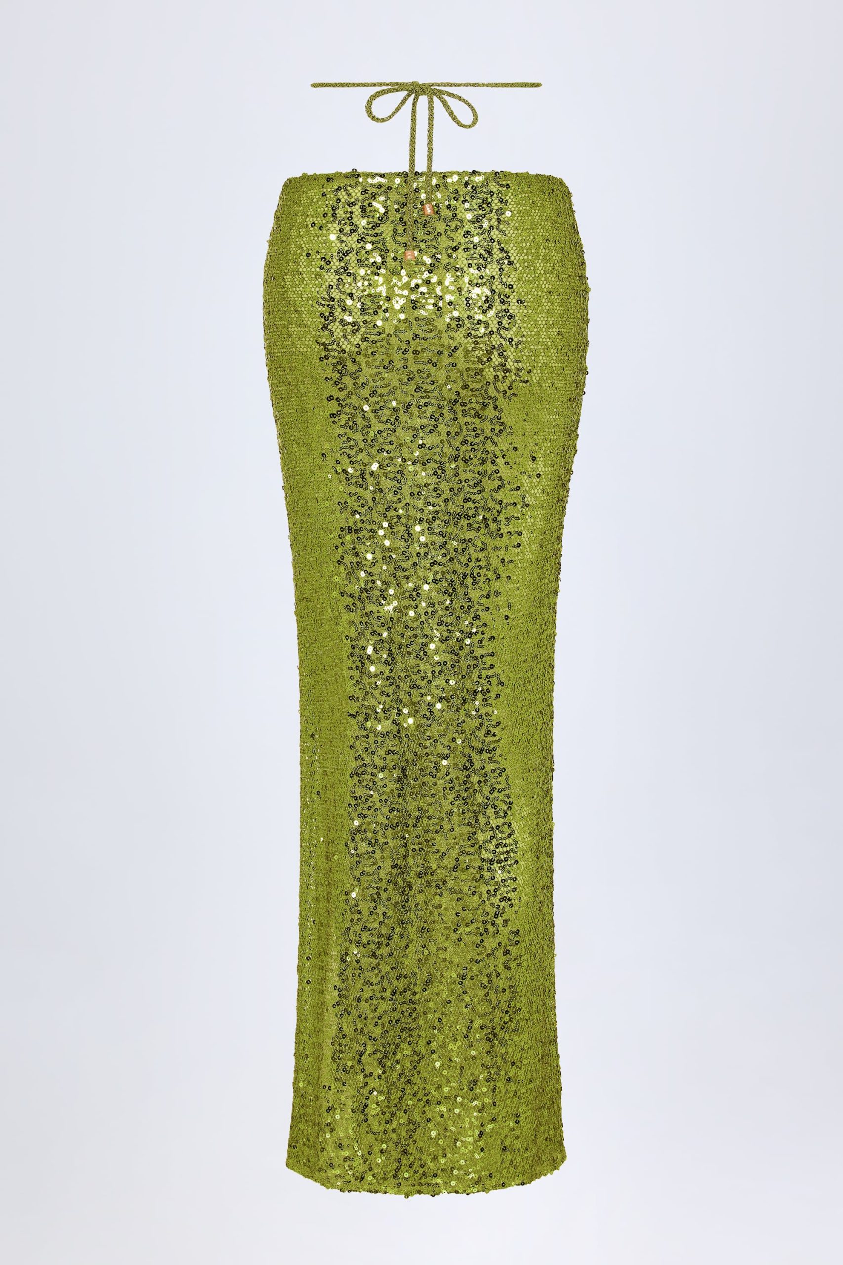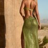 Sultry sparkle for balmy nights. A lightweight, crochet-knit design elevated with tonal sequins, the Abaco maxi skirt is cut to a column silhouette and detailed with a statement thigh-high split. It’s anchored with gold-tone hardware and adjustable strap detailing.