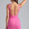 Doll-inspired looks with a noughties twist. The Yasmin dress is cut to a thigh-grazing mini silhouette and punctuated with lace-up cut-outs at each side. Designed in our figure-hugging 20D mesh fabric, it’s adorned with embellishments that’ll sparkle under the spotlight of the mainstage or sunlight at your favourite beach club. The plunging scoop neck is mirrored at the back and finished with slender horizontal straps that can be adjusted for your perfect fit.