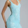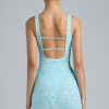 Doll-inspired looks with a noughties twist. The Yasmin dress is cut to a thigh-grazing mini silhouette and punctuated with lace-up cut-outs at each side. Designed in our figure-hugging 20D mesh fabric, it’s adorned with embellishments that’ll sparkle under the spotlight of the mainstage or sunlight at your favourite beach club. The plunging scoop neck is mirrored at the back and finished with slender horizontal straps that can be adjusted for your perfect fit.