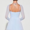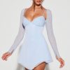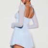 Designed to be noticed, the Naples mini dress is an all-new silhouette with a form-fitting bodice and an elegant angled mini skirt with gentle layers of mesh and jersey. Complete with sparkling seeded embellishment on the cups and single layer sleeves.