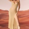 A sexy silhouette cut from our all new stretch mesh and embellished fishnet fabrication, the Lyric maxi dress is a fun and seductive style, perfect for the upcoming festival season. Fully adorned with sparkling rhinestones throughout, this semi sheer maxi dress is tight cut to the body for a seductive, curve accentuating fit that stands out amongst the crowd. With a plunging V neckline and seductive low back, the Lyric maxi dress is complete with a sexy thigh high split that exposes the left thigh.