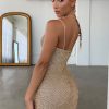 A true party classic. Cut to a figure-defining bodycon silhouette, the Drop a Glint mini dress is made from our premium, sculpting, and stretchy glittered mesh with sparkling bead embellishments and is lined in soft jersey for enhanced coverage. It’s framed with a scoop neckline and fixed rouleau shoulder straps.