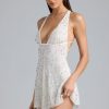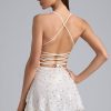 Meet your newest obsession: the Luna mini dress. It’s crafted from our premium 20D mesh fabric with a touch of stretch for a comfortable figure-hugging fit and embellished with swirling crystal embellishments for a touch of head-turning sparkle. The A-line silhouette is anchored with rouleau shoulder straps and adjustable multi-strap lace-up detailing at the back.