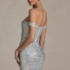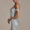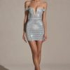 Sparkle that speaks for itself. The Leonora mini dress is embellished with diamond-shaped HOTFIX embellishments that catch the light from every angle, perfect for special events. It’s made from our premium power mesh with a touch of stretch and a built-in corset for a figure-defining bodycon fit. It’s framed with a plunging sweetheart neckline and off-shoulder cap sleeves.