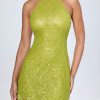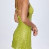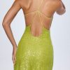 Embellished Open-Back A-Line Mini Dress in Pear Green
