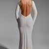 Classic elegance with a signature twist. Modelled on timeless styles, the Jailene gown is cut from double-layered premium power mesh to a stunning fishtail silhouette framed with a high boat neck. It’s adorned with unique scalloped crystal embellishments and turns to reveal a statement open back, complete with an adjustable horizontal strap for a custom fit and perfectly positioned ruching at the back for enhanced shaping.