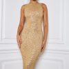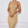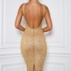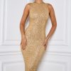 We love a classic with a twist, so we designed the Gianina midaxi dress. A minimalist design with a high-neck bodycon silhouette, it’s crafted from premium 20D stretch mesh and lined in stretch jersey for enhanced coverage. It’s framed with a sultry low open back, complete with an adjustable strap for your perfect fit, and embellished with scores of sparkling sequins and beads.