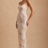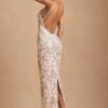 High-octane glamour meets clean lines with the Tavira maxi dress. A figure-hugging design crafted from premium mesh with a touch of stretch, it’s overlaid with scores of sparkling coral-inspired embellishments for maximum effect. The sultry low open back cements the statement feel.