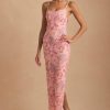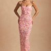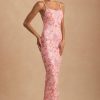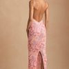 Embellished Scoop-Neck Backless Maxi Dress in Pink