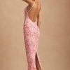 Embellished Scoop-Neck Backless Maxi Dress in Pink