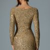 Embellished Sweetheart-Neck Mini Dress in Gold