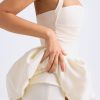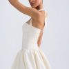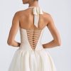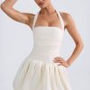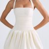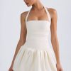 Playful silhouettes for memorable nights. Rendered in two standout hues, the Ludmila mini dress is crafted from sumptuous georgette and satin to a structured bubble hem silhouette, complete with matching jersey shorts to temper the micro mini length. It’s framed with an adjustable halterneck for a supportive fit and is complete with corset-inspired lace-up detailing at the back.