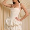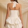Playful glamour. An all-new take on one of our favourite shapes, the Andri mini dress is crafted from premium stretch georgette with a figure-defining drop-waist corset bodice and a stunning double-layered bubble hem lined with voluminous organza. It’s framed with an adjustable halterneck for your perfect fit and comes with matching jersey shorts for the perfect amount of coverage.