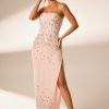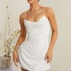 Captivate the room in Signe, our latest eventwear design made from our elegant georgette fabrication. Created to enhance your silhouette, Signe features bust flattering wired cups overlaid with cowl neck draping, creating an alluring and supportive fit. Ensuring you captivate every corner of the room, the Signe mini dress features a cut out back with delicate self tie fastenings whilst the a-line mini skirt skims your thighs and features side ruching channels. Complete with hand sewn diamante embellishment throughout the design, the Signe mini dress is a fun and flirty design perfect for elegant functions.