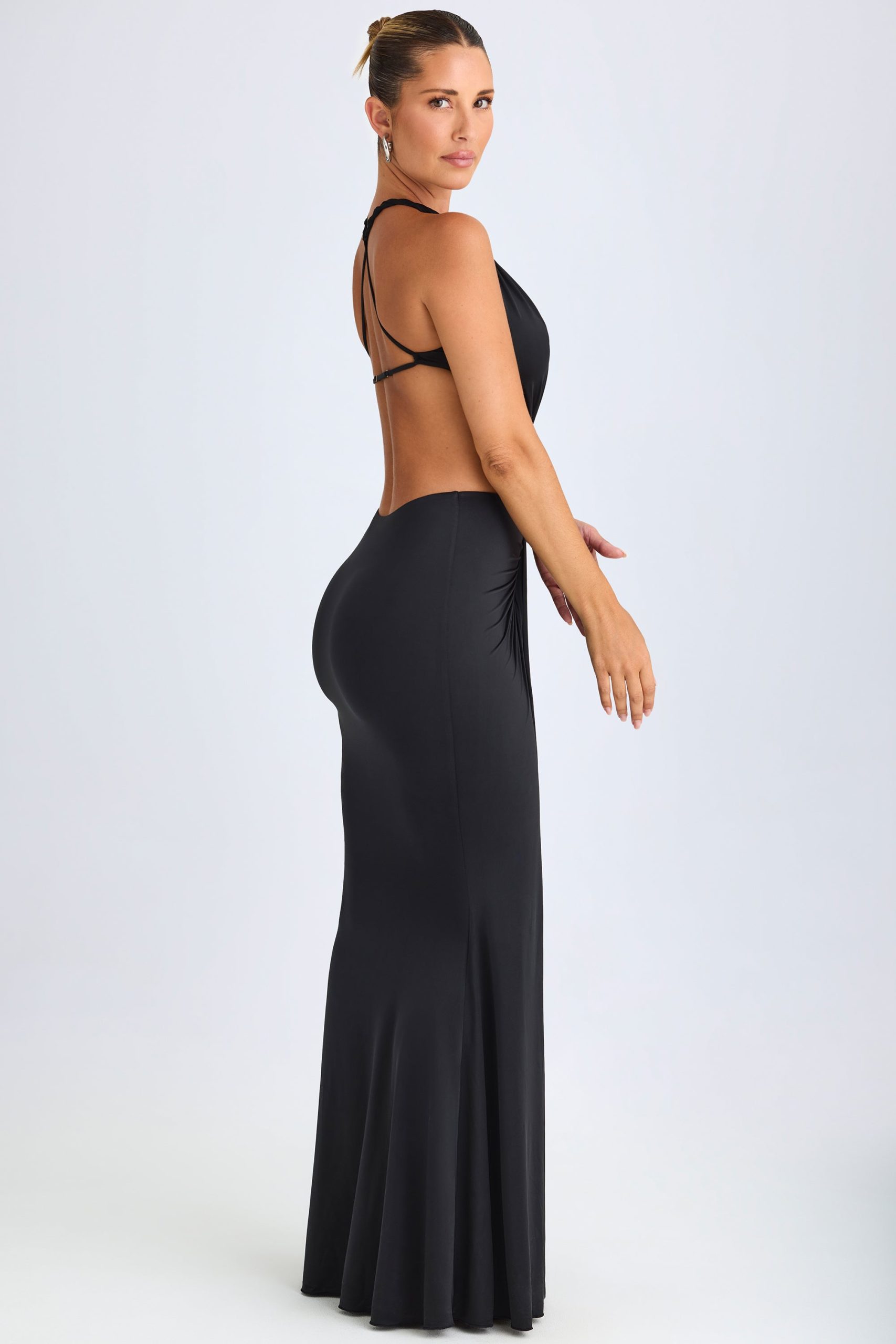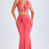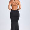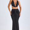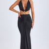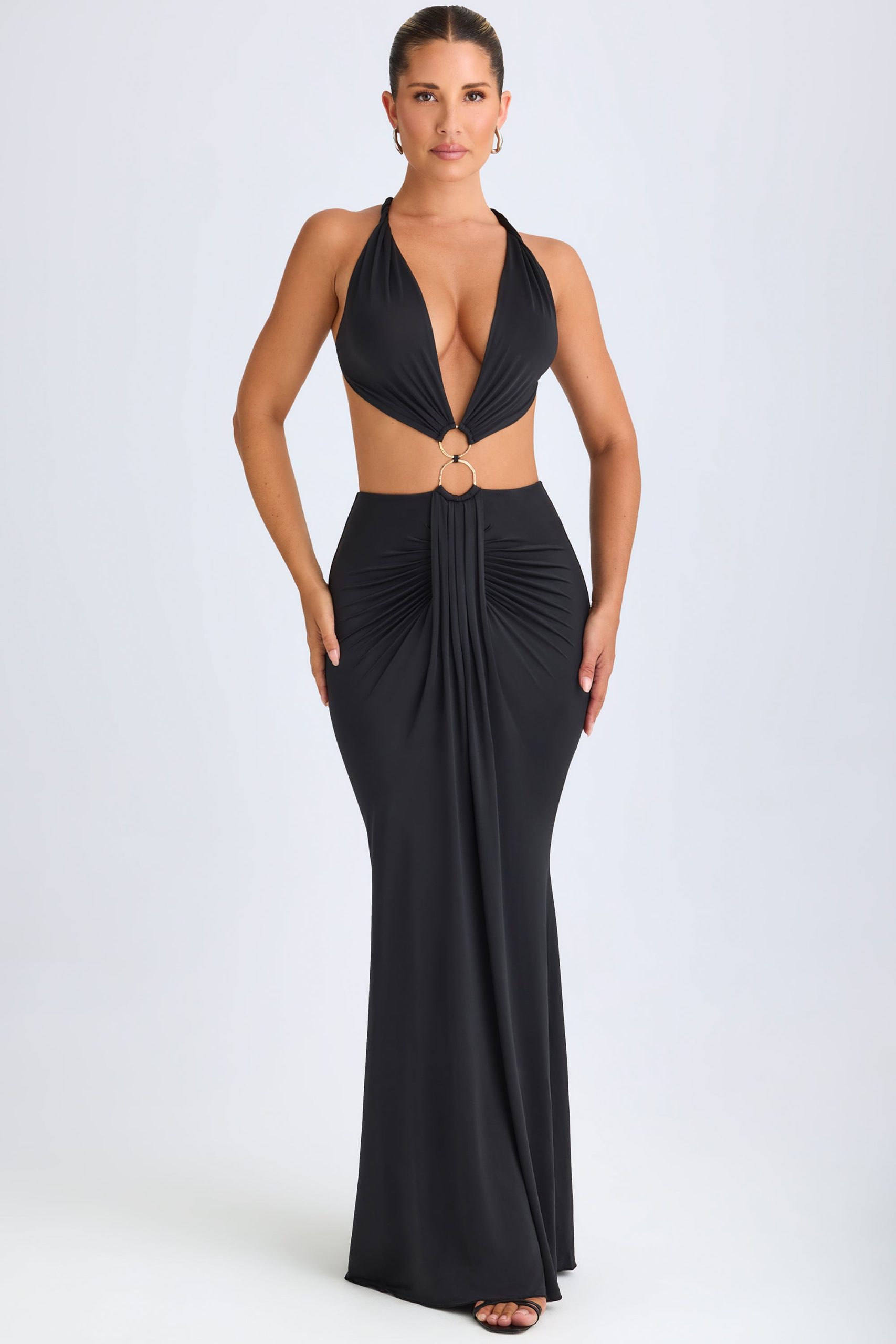 Made for sultry summer nights. A statement design you’ll want to pack for your next tropical getaway, the Omarosa maxi dress is crafted from premium, soft-touch slinky jersey to a figure-skimming fishtail silhouette. It’s framed with a plunging V-neckline and punctuated with statement cut-outs at the waist secured with polished O-ring detailing. The open back is detailed with criss-cross straps that can be adjusted for your perfect fit.
