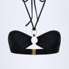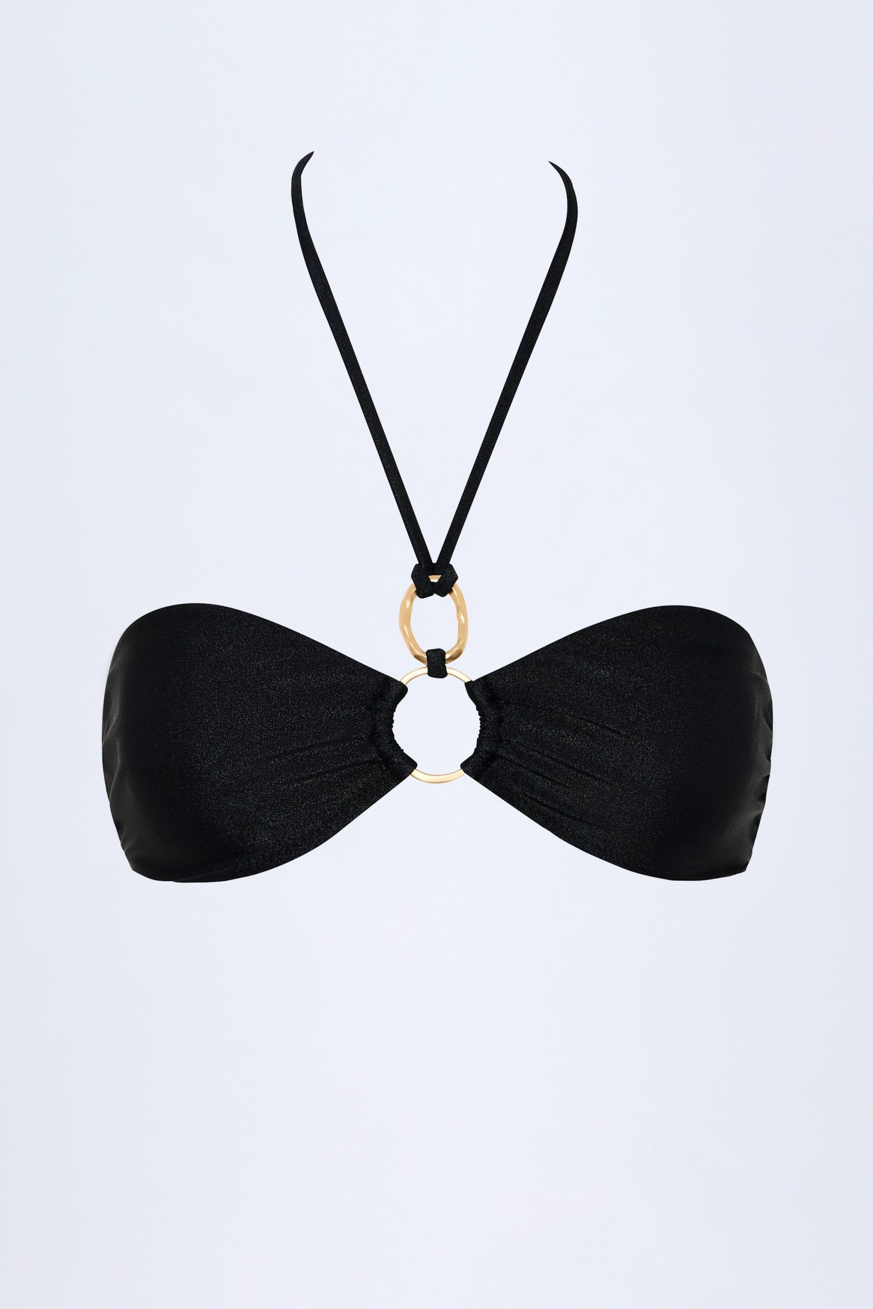 Hardware-Detail Ruched Halterneck Bikini Top in Black