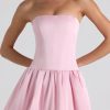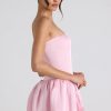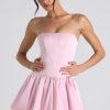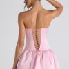 A head-turning silhouette for spontaneous spring plans. Available in two seasonal hues, the Fabiola dress is crafted from sumptuous stretch satin to a standout bubble hem silhouette juxtaposed with a subtle sweetheart neckline, held in place with internal silicone taping. It features a supportive corseted bodice complete with an adjustable lace-up back and comes with built-in jersey shorts to temper the micro mini length.