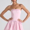A head-turning silhouette for spontaneous spring plans. Available in two seasonal hues, the Fabiola dress is crafted from sumptuous stretch satin to a standout bubble hem silhouette juxtaposed with a subtle sweetheart neckline, held in place with internal silicone taping. It features a supportive corseted bodice complete with an adjustable lace-up back and comes with built-in jersey shorts to temper the micro mini length.