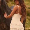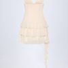 Western meets glamour with the Toren mini dress. Crafted from premium, lightweight chiffon with a stretch-satin lining for extra comfort, it’s designed with a sculpting corset bodice and tiered skirt, complete with a cascading ruffle trim. It’s elevated with lace-up eyelet detailing, ruched cups, and adjustable shoulder straps with functional rouleau ties for your perfect fit.