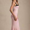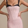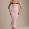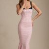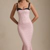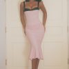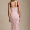 Layered Bra-Detail Fishtail Midaxi Dress in Pink Polka Dot