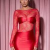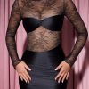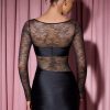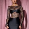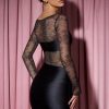 Long-Sleeve Lace-Panel Draped Bodycon Mini Dress in Black
