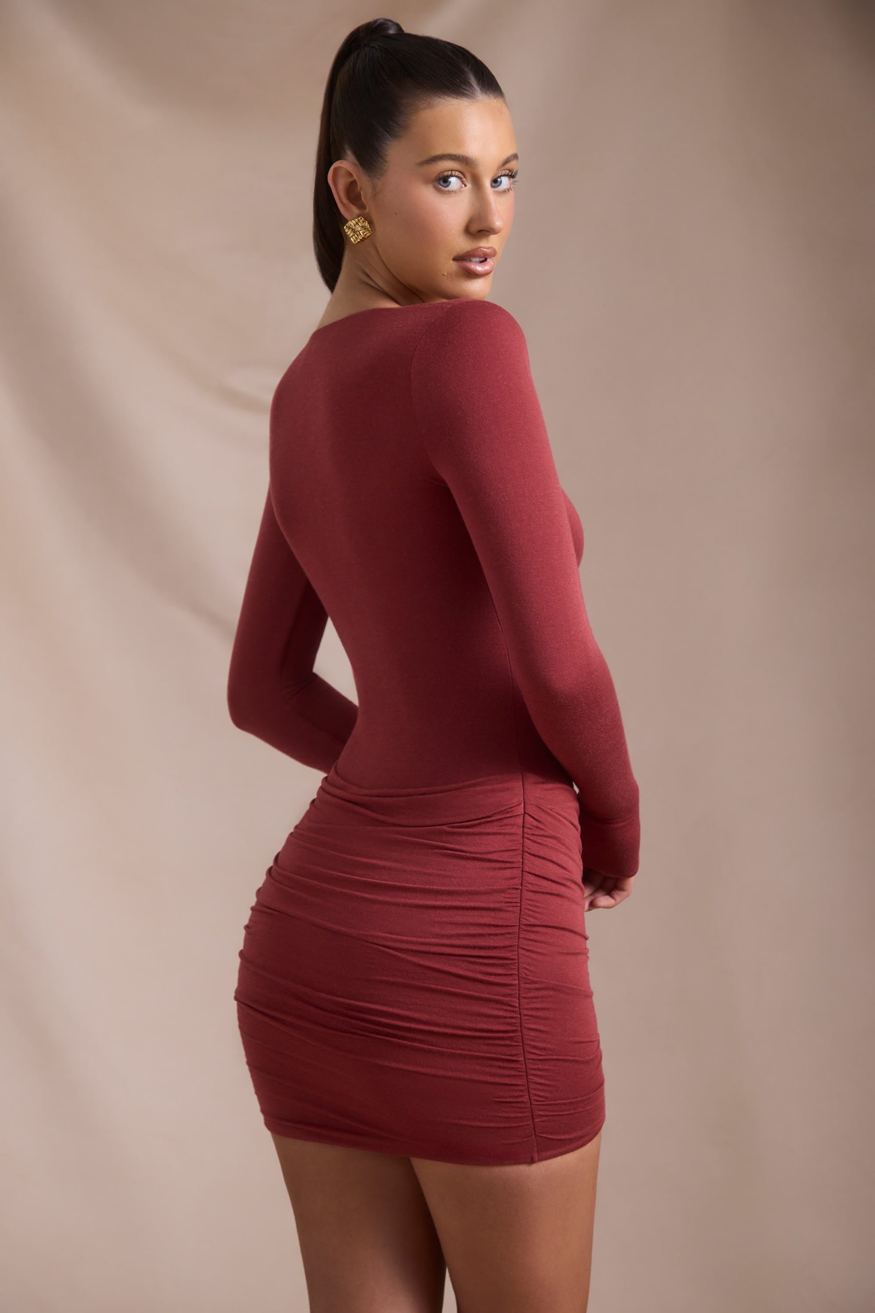 Made to feel as good as it looks, the Eilise mini dress is crafted from our luxe modal-cashmere blend that features temperature-regulating properties for enhanced warmth and cloud-like softness. It’s cut to a figure-defining bodycon silhouette with a fitted bodice and draped mini skirt overlay, elevated with perfectly placed ruching.