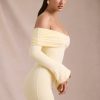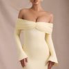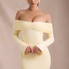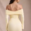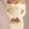 Effortless styling, everyday luxury. Made from premium and super soft modal-cashmere blend, the Thais mini dress is a staple you’ll reach for year-round, with temperature-regulating properties and a plush, cloud-like texture. It’s framed with off-shoulder flared sleeves, cut to a figure-defining bodycon silhouette and features a foldover sweetheart neckline with precise ruching.