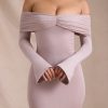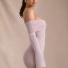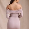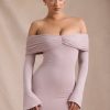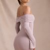 Effortless styling, everyday luxury. Made from premium and super soft modal-cashmere blend, the Thais mini dress is a staple you’ll reach for year-round, with temperature-regulating properties and a plush, cloud-like texture. It’s framed with off-shoulder flared sleeves, cut to a figure-defining bodycon silhouette and features a foldover sweetheart neckline with precise ruching.