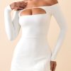 Modal Cut-Out Off-Shoulder A-Line Mini Dress in White