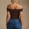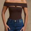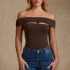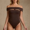 Modal Cut-Out Off-Shoulder Bodysuit in Chocolate Brown