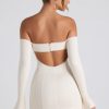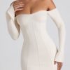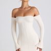 One to save for al fresco plans or sun-kissed evenings. Crafted to a subtle A-line silhouette, the Suki mini dress is made from buttery soft jersey with TENCEL™ Modal – a fibre mainly manufactured from renewable beechwood, sourced from sustainable forests. It’s enhanced with underbust seams and framed with off-shoulder long sleeves and a sweetheart neckline, traced with delicate lace trims. A striking cut-out back completes the look.